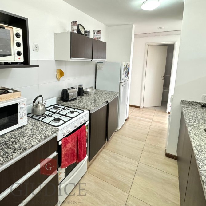 La cocina es amplia, independiente, amoblada que conecta a un gran living con ventanales que permiten una muy buena ventilación e iluminación.
